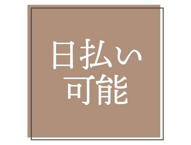 | 待遇 | ◆体験入社時全額日払い(入社後も日払い可能) ◆週2~3日からの出勤もOK(アルバイト) ◆40代も歓迎! ◆社会保険完備 ◆昇給・昇格随時 ◆賞与・歩合あり ◆寮完備 ◆まかないあり ◆独立支援制度あり ◆女性社員も歓迎! ◆入社祝い金最大10万円支給 (規定あり) ◆研修制度あり ◆ロッカー完備 ◆客引き・キャッチなし ◆大型連休あり ◆交通費支給 |