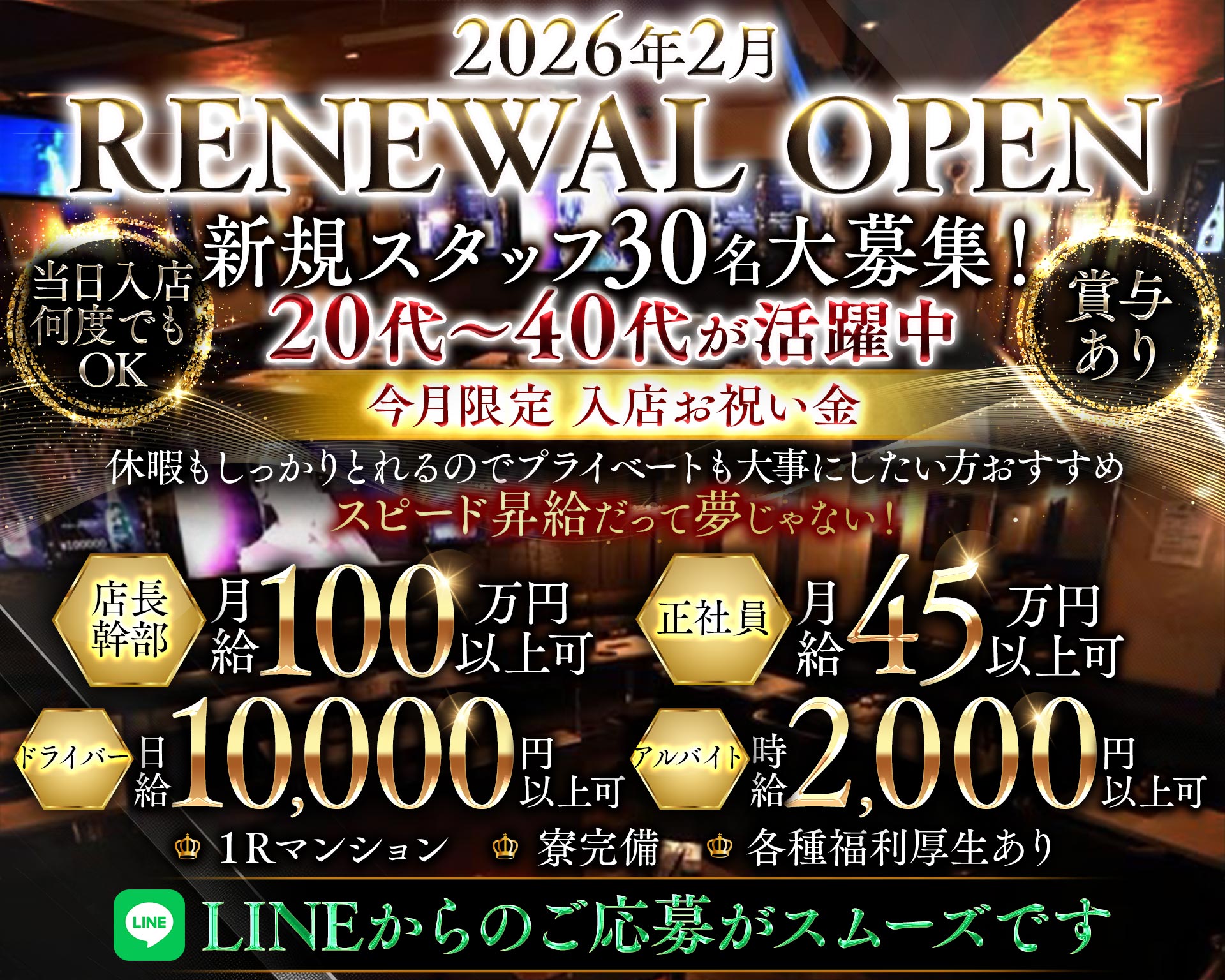 | 待遇 | ◆日払いOK ◆寮・社宅あり ◆40代・50代歓迎 ◆昇給・昇格随時 ◆体験入社OK ◆賞与あり ◆送りあり ◆制服貸与 ◆交通費支給※条件あり ◆食事補助あり ◆独立支援あり ◆女性も歓迎 ◆有給制度あり ◆祝い金あり※条件あり ◆社員ロッカーあり 【社】 ◆週休2日制度 【ア】 ◆副業・かけもちOK ◆週2~3日勤務OK ◆受動喫煙防止処置あり |